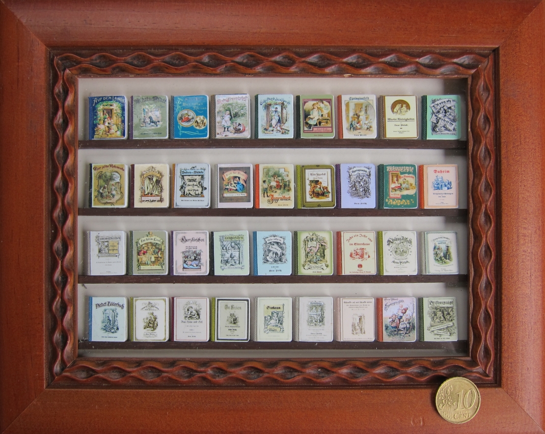 In meinen Miniaturbüchern kann ich nicht den gesamten Inhalt der Pletschbücher abbilden da ich durch die Seitenanzahl begrenzt bin, wollte aber die wunderschönen Bilder und Texte in diesen Büchern in Erinnerung bleiben lassen. Damit auch die Texte ohne Hilfsmittel lesbar sein sollten habe ich mich zu verschiedenen Größen der Bücher entschieden.
